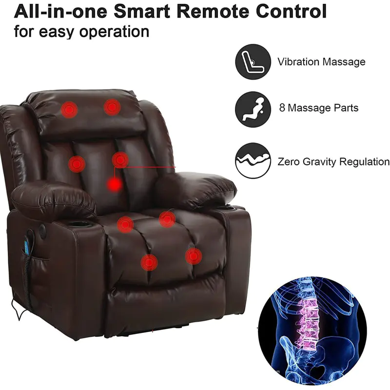 • Full-body Vibration & Lumbar Heating-This electric recliner has 8 vibration points,covers the back,lumbar, thighs and legs,with lumbar heating function,can be better relaxed,eliminate stress and fatigue,helps to further improve blood circulation in the lumbar.