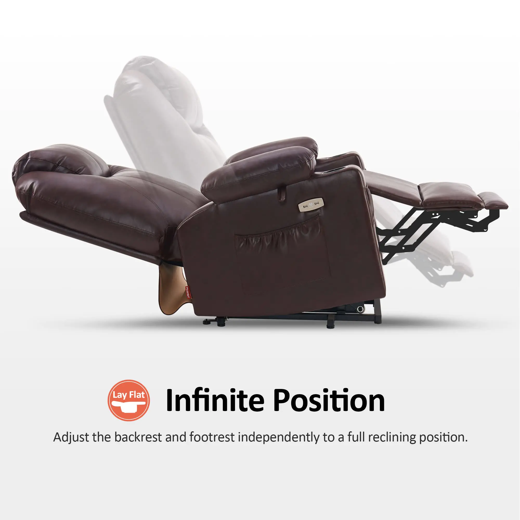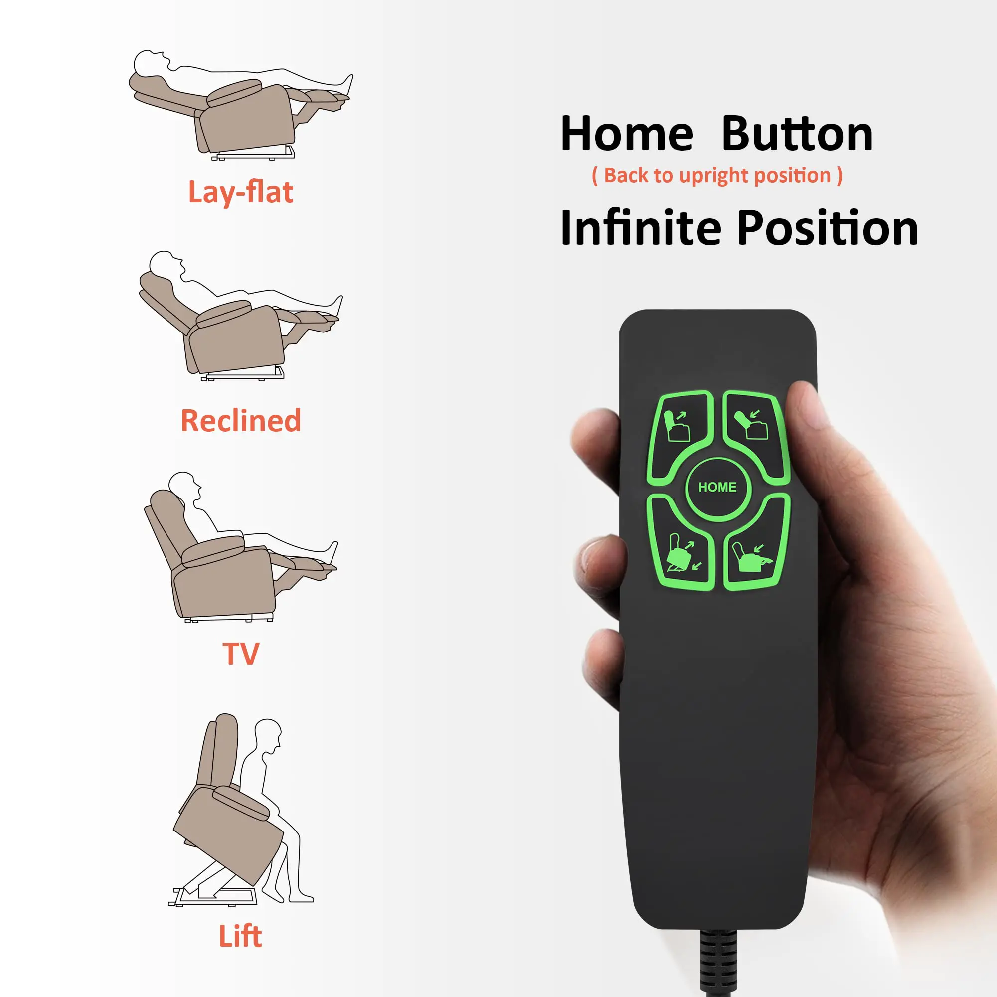 Power Lift Assistance: Counter-balanced lift mechanism with TUV certified actuator pushes the entire chair up to assist the user stand up easily without adding stress to back or knees, smoothly adjust to lift or reclining position you prefer by pressing two buttons on the remote control.