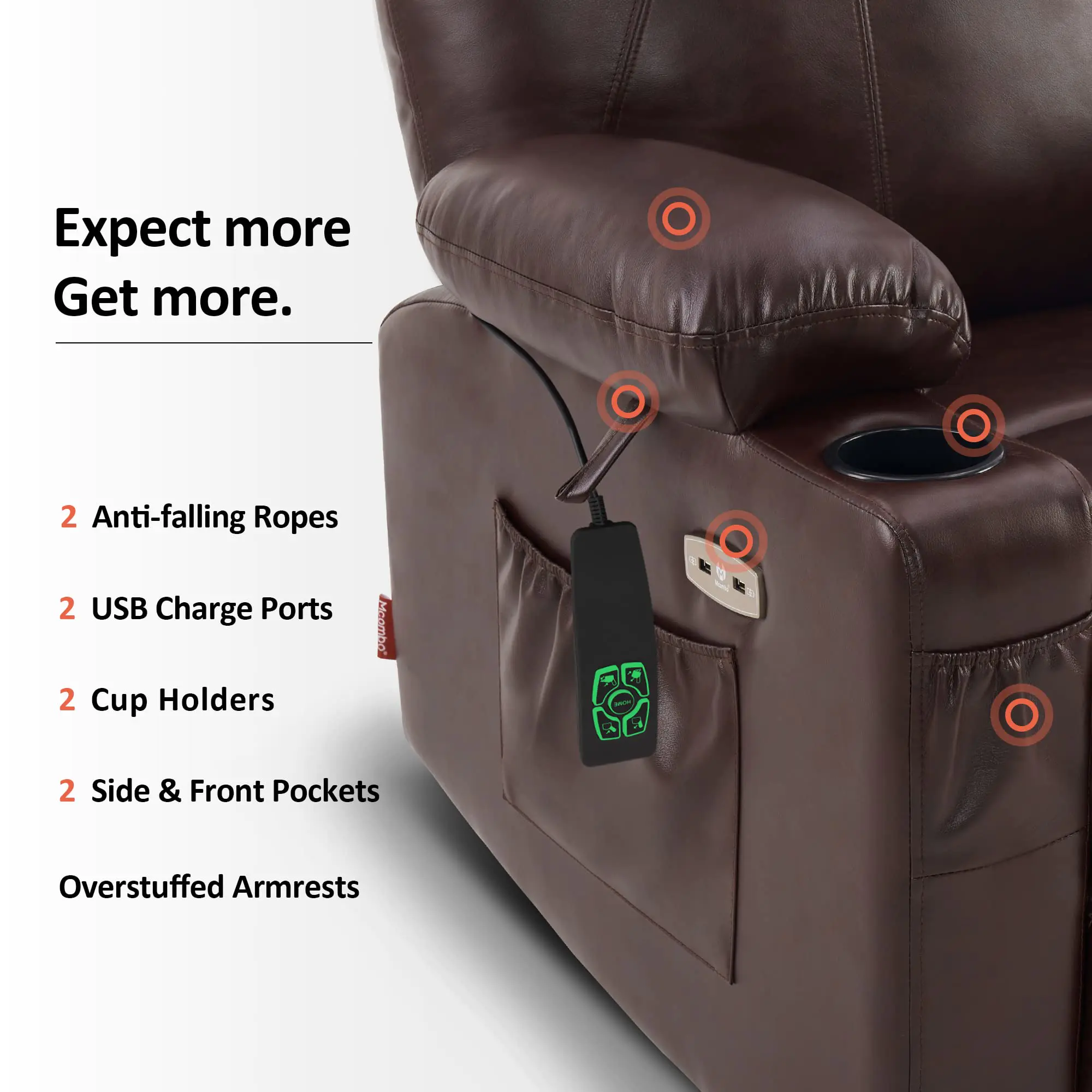 💥Clearance Sale🔥 Mcombo Electric lift Recliner sofa with massage and heating functions, 3 positions, 2 side pockets and cup holders, USB ports!