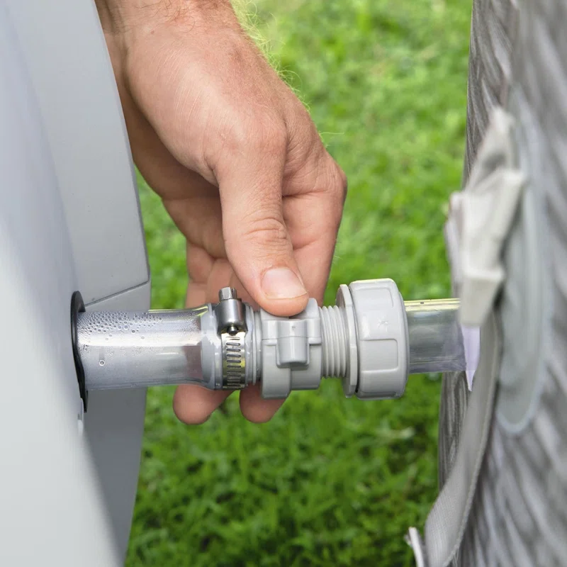 After a long day, there's nothing more relaxing than sinking into warm, bubbling water right in your own backyard. The spacious, round design of the Honolulu SaluSpa Hot Tub provides a soothing massage experience for up to 6 people. Simply attach the pump and watch as it inflates. Featuring an AirJet system with 140 jets, this hot tub releases bubbles from the bottom of the spa to create a warm, bubbling hot tub environment. These calming bubbles will help you relax and unwind from the comfort of your home. Built with durable DuraPlus materials to prevent damage, you can ensure that this hot tub will retain its shape after repeated inflation and deflation. Including a Freeze Shield with an automatic heating function, this hot tub's inner components will not freeze during colder temperatures. Including built-in cupholders and a reinforced, insulated pool cover that locks in heat while not in use, you can be sure this spa is ready for when you are. Escape away to loosen your muscles with the Honolulu SaluSpa Hot Tub from Bestway.