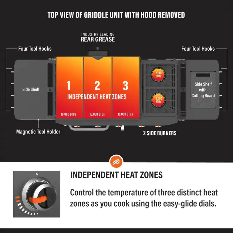 - 613 square-inches of griddle cooking area