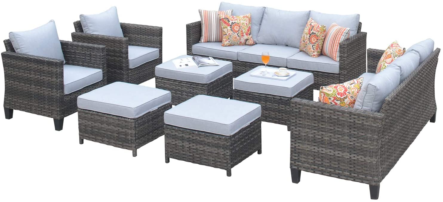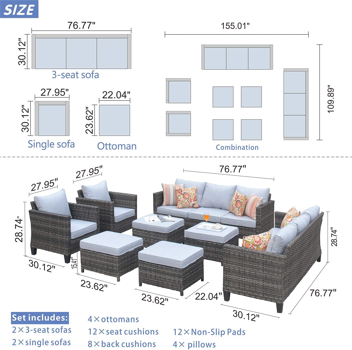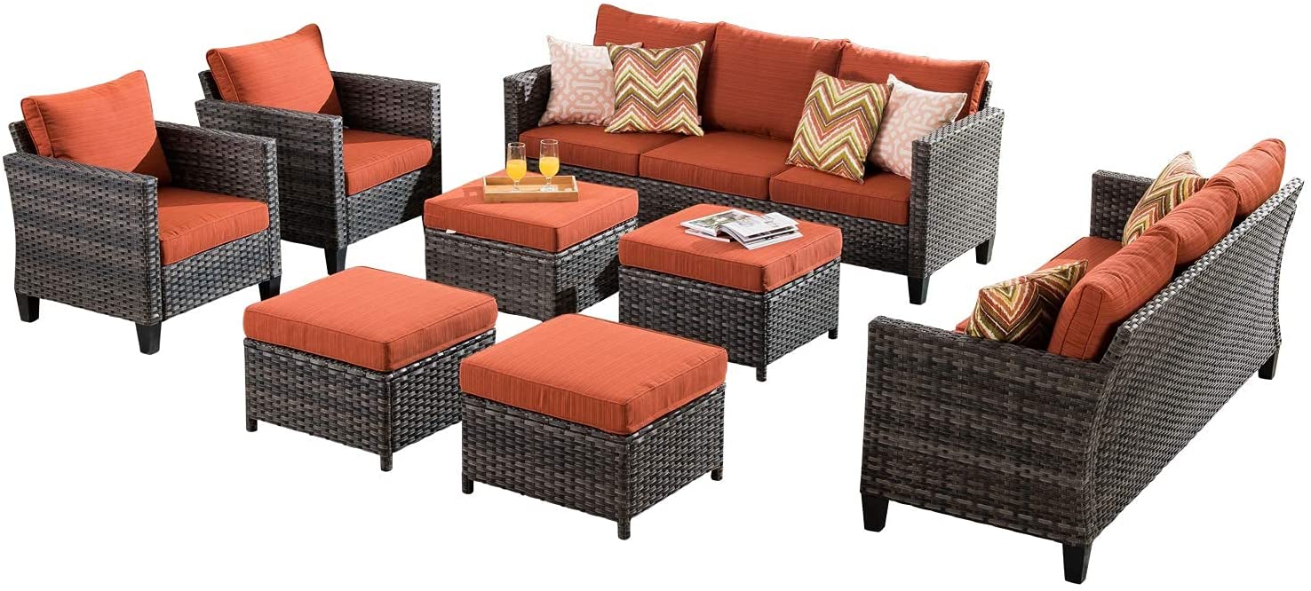 - Outdoor Sofa Set: this big size comfortable outdoor sectional sofa suitable for 8 friends and let you enjoy leisure time with friends and family. Suitable for most places