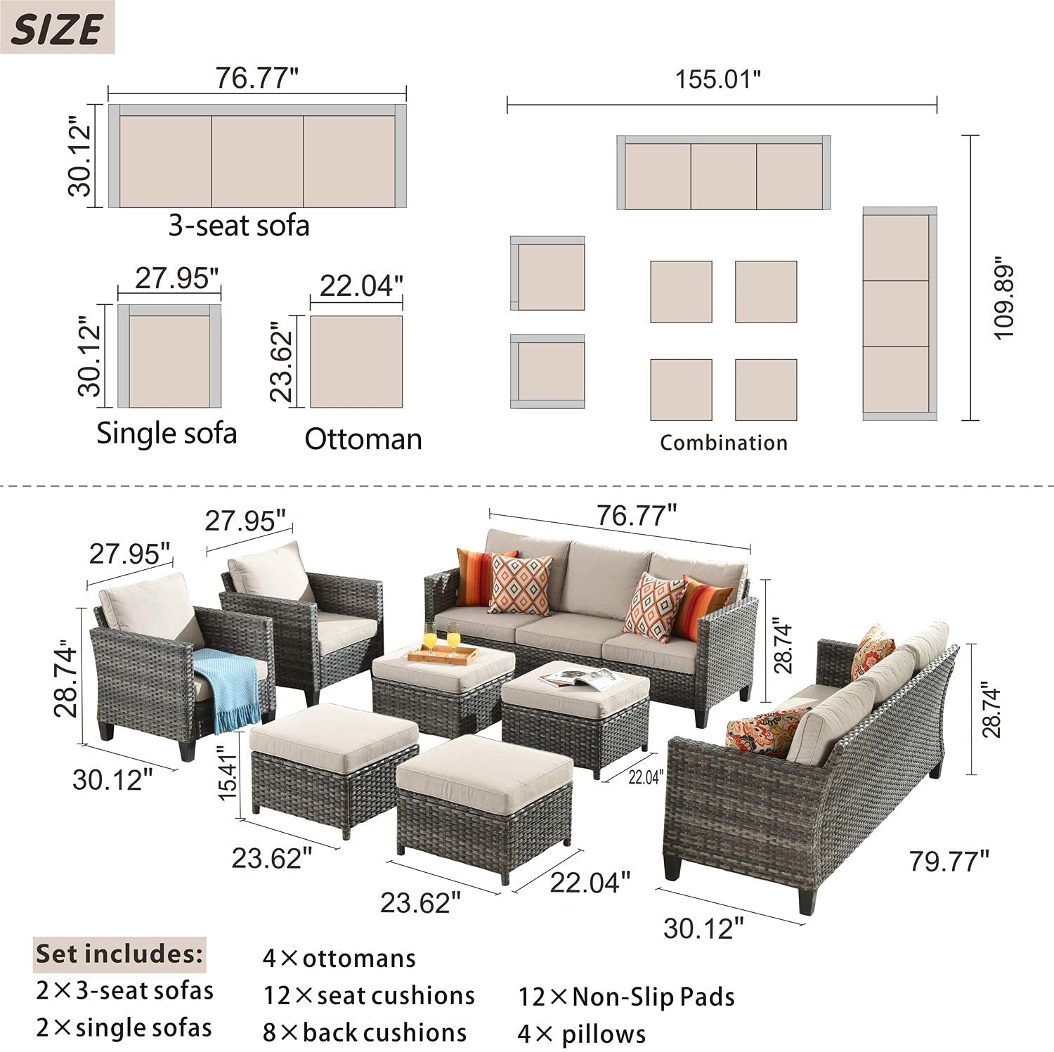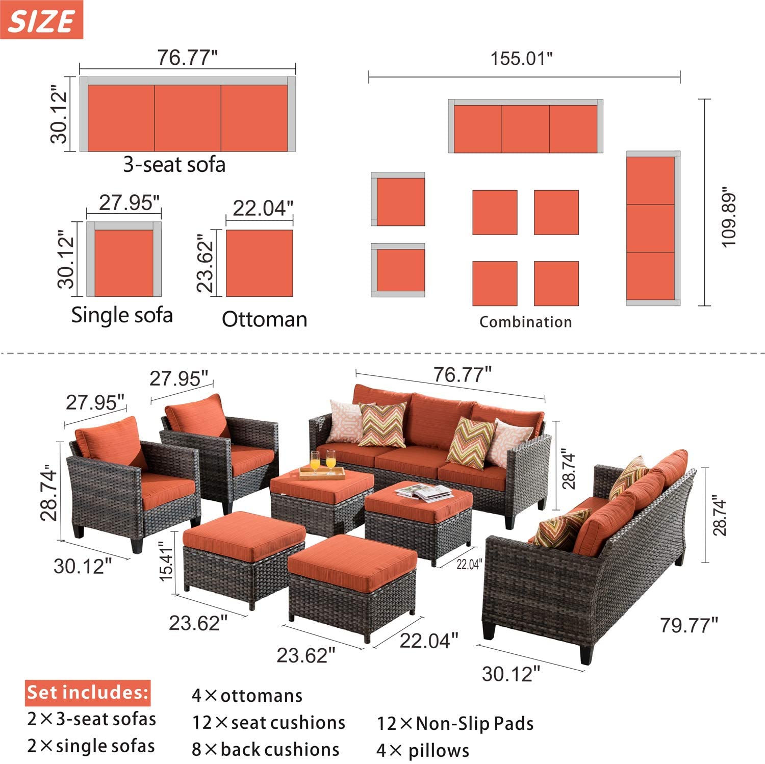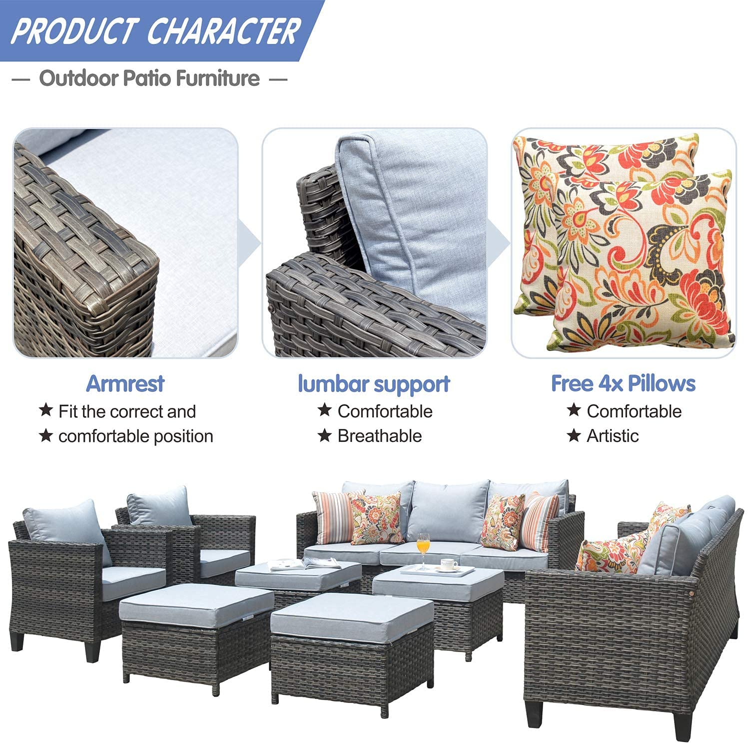 - Outdoor Sofa Set: this big size comfortable outdoor sectional sofa suitable for 8 friends and let you enjoy leisure time with friends and family. Suitable for most places