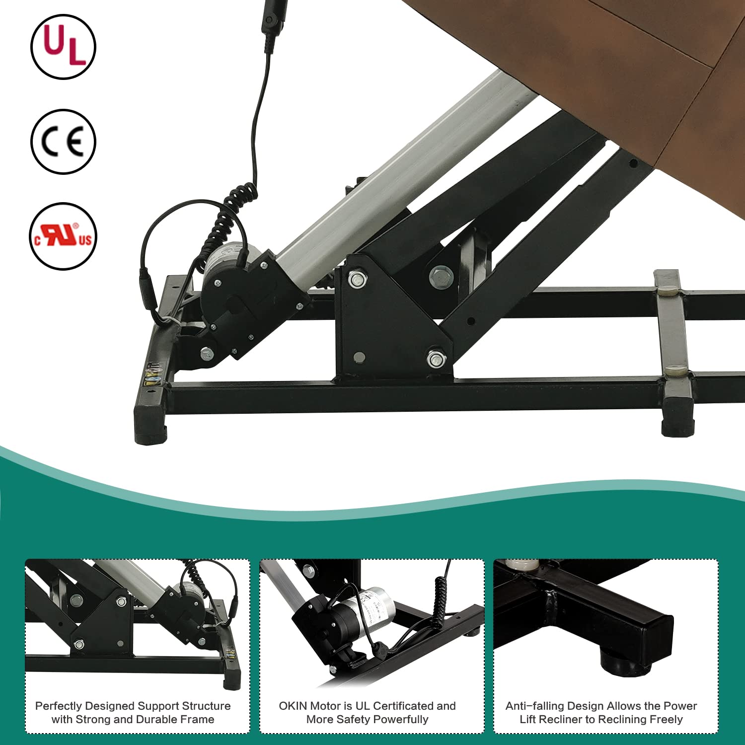 With over 4,000 lift and down tests, the durable and powerful German motor drives the electric lift chair to lift and recline safely and smoothly with low noise. The sturdy metal frame provides stable support for years of use.